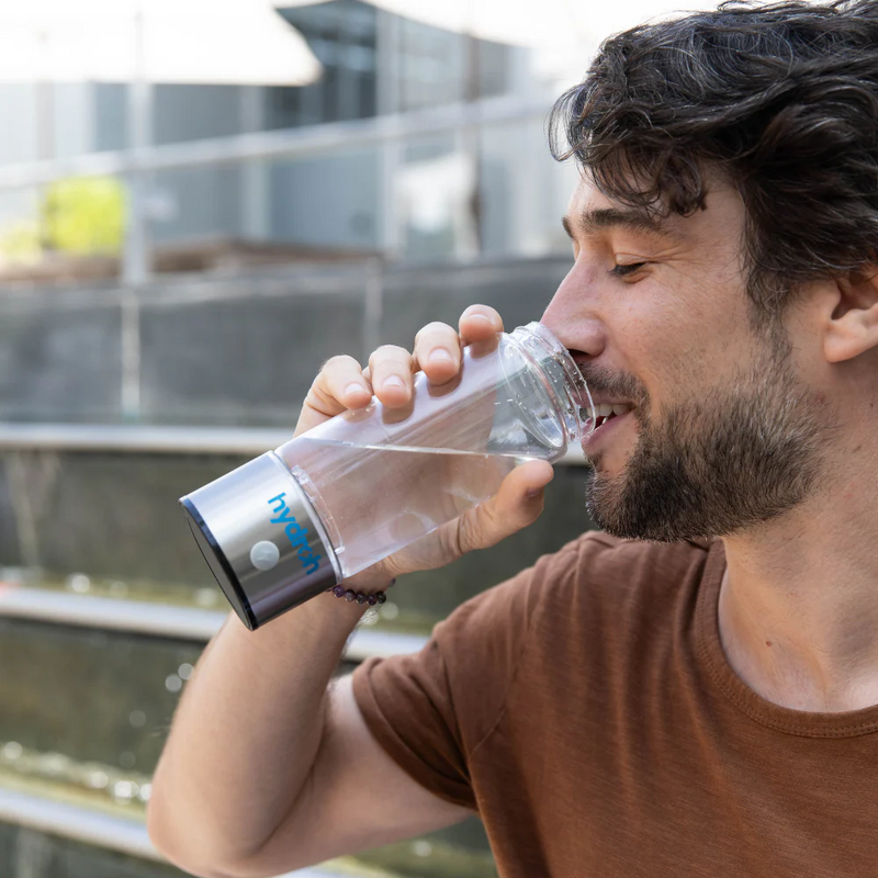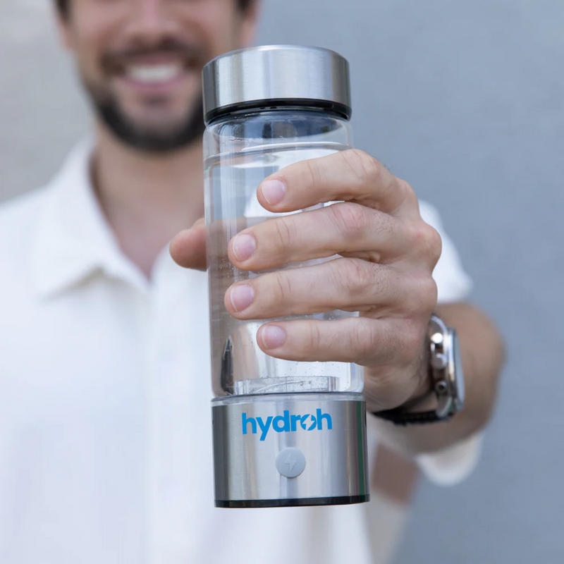 After pushing the button our Hydroh Bottle makes hydrogen water through a process called electrolysis. Electrolysis is the separation of water into its natural elements (H₂, O).